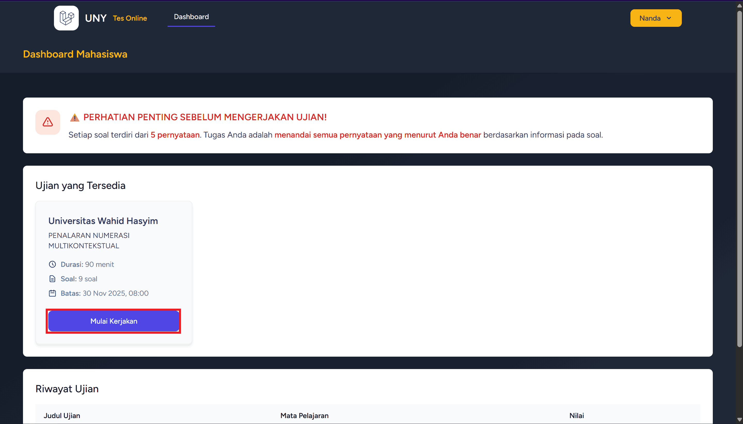 Durasi pengerjaan adalah 90 menit. Pastikan Anda memanfaatkannya dengan baik.